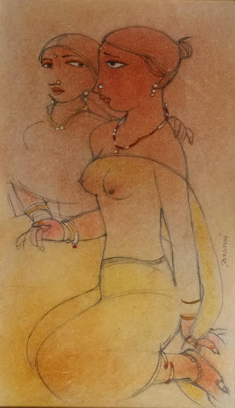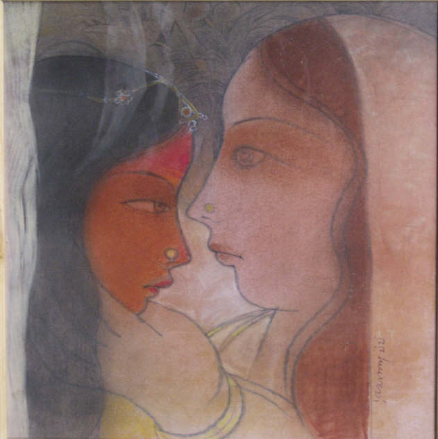 Ramananda Bandyopadhyay's art can be described as quintessentially Bengal oriented: lyrical and romantic, highlighting the lives of average middle-class Indian families with grace and beauty. Inspired by Nandalal Bose, there's a marked religious influence in his choice of subjects, and mythology forms a large part of the narrative in his art. A feature that ties Bandyopadhyay's repertoire together is his use of earthy colours, applied with expertise.