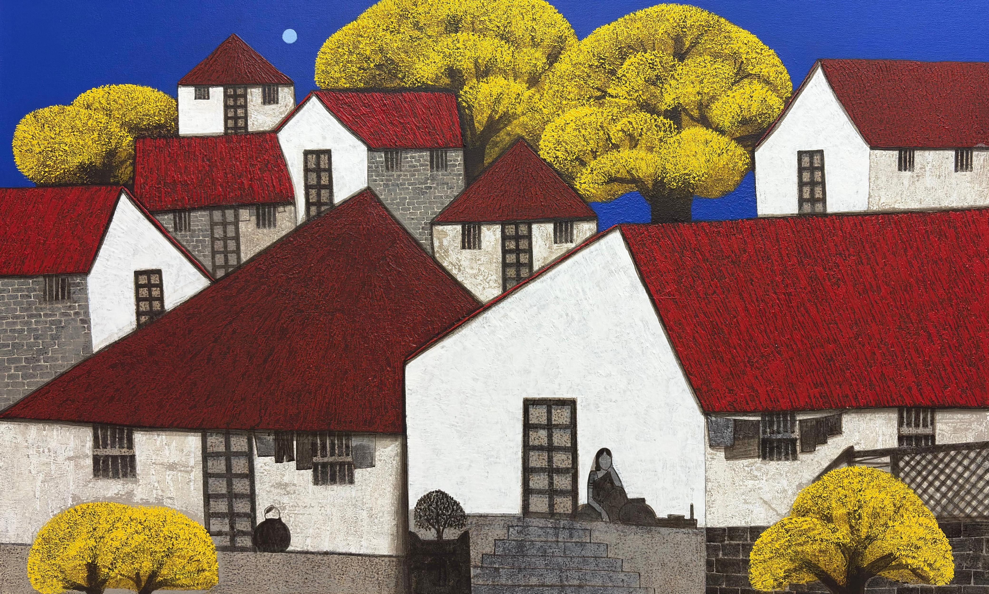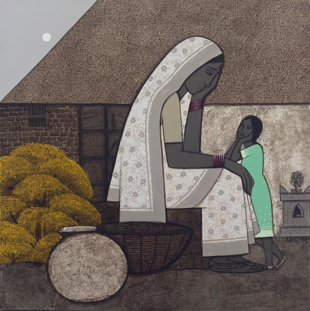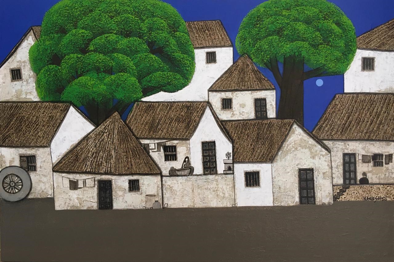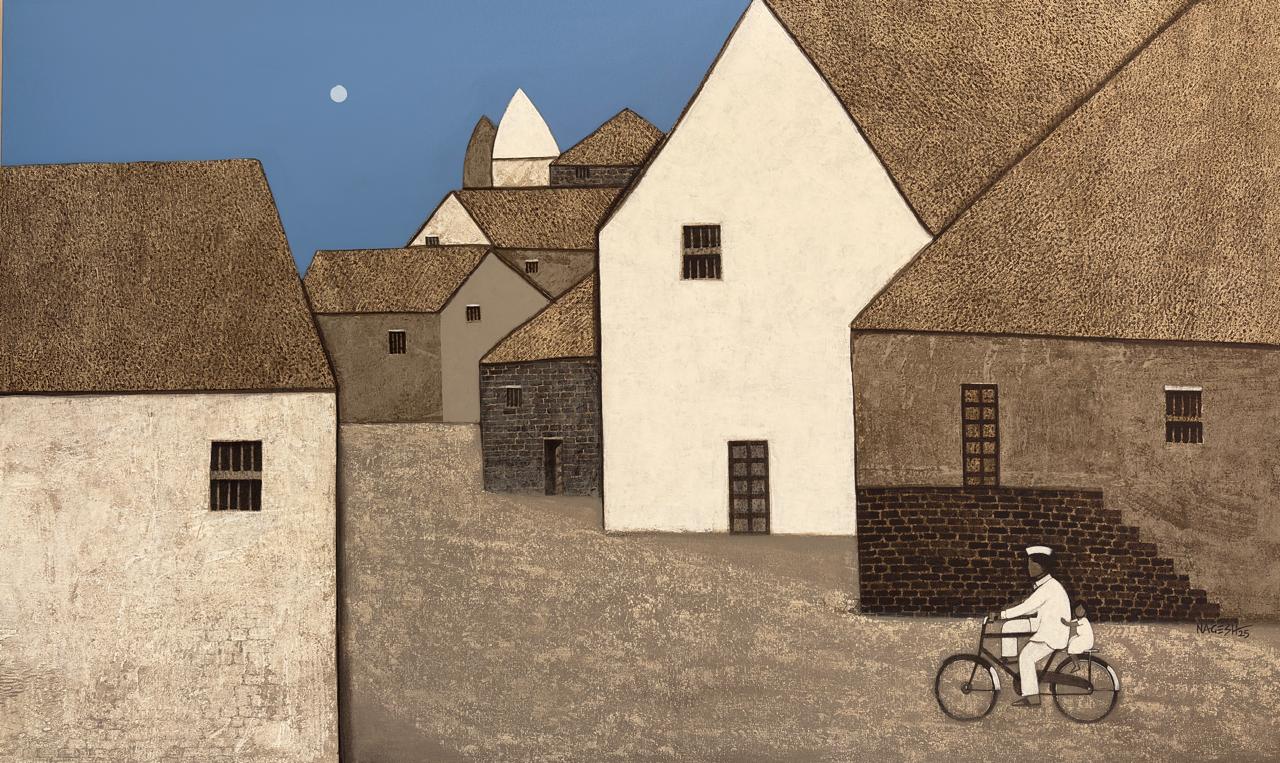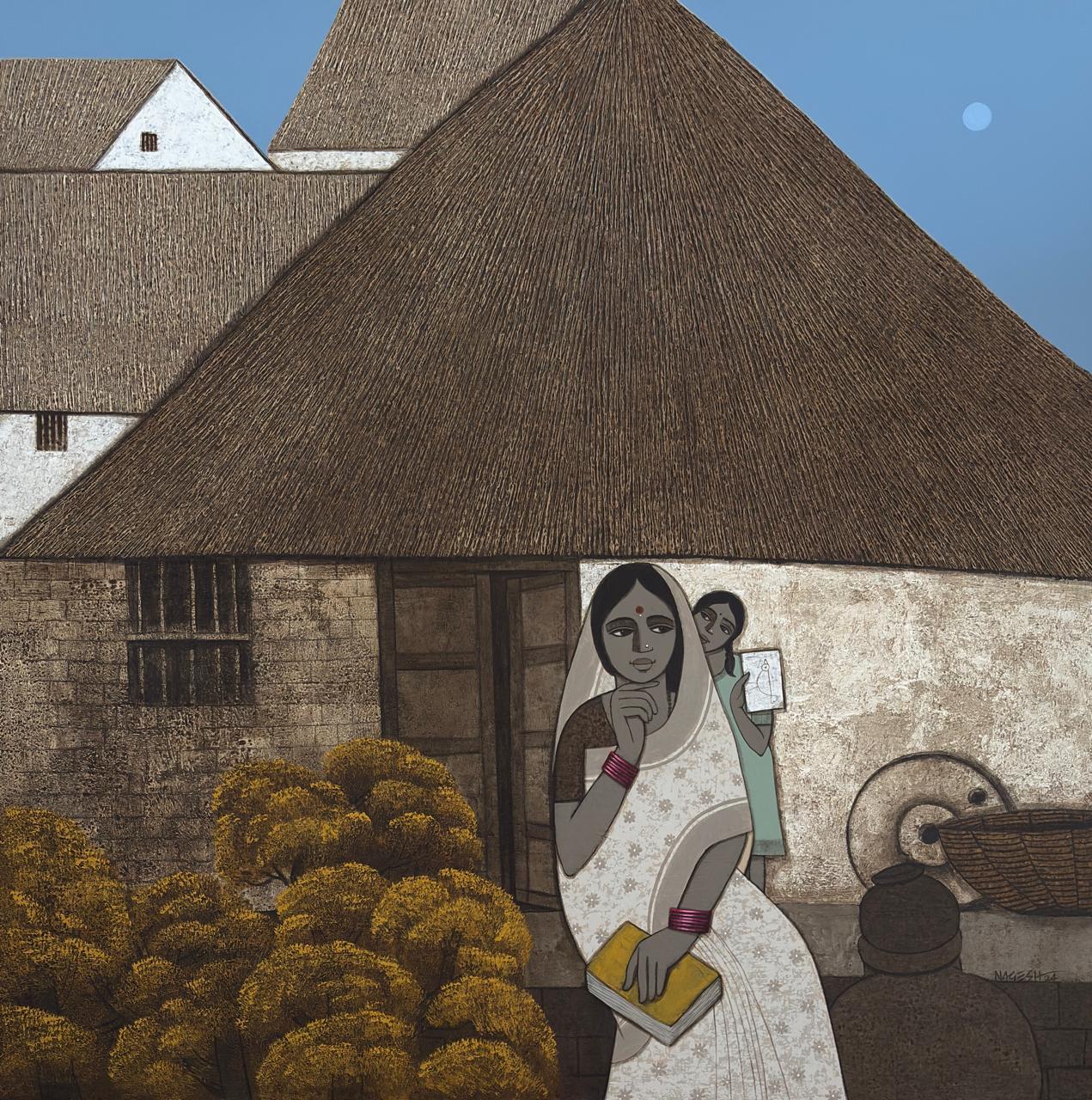 Nagesh Ghodke from Mumbai is renowned for his simple, childlike village scapes against the backdrop of nature, in the simplest, most aesthetic style. Indian villages have a pristine beauty to them, which is remarkably riveting. If one is looking for something that captures the very essence of an abstract representation of villages drenched with greens, blues and reds, this sought after artist's sublime works with an unspoiled purity would be the best choice.