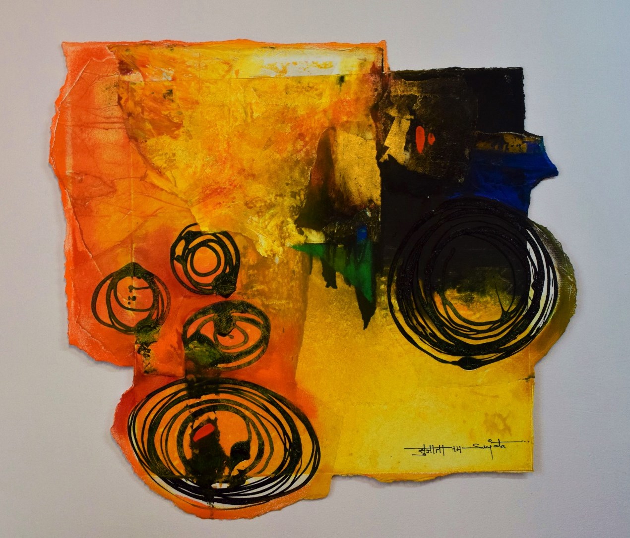 As evident in her vibrant, energetic canvases, "There's influence of both French and Indian art in my work. I use a lot of vibrant colours, but balance the colours with the texture", says Sujata Bajaj who, from her days at the Ecole des Beaux Arts, in Paris, where she experimented with the monotype to her studio in Norway and her home in Pune, has explored various materials, media and methods. She has worked with different art forms and media such as etching, wood-cut, sculpture, murals, cold ceramic, fiberglass, metal, mixed media and, now, acrylic.