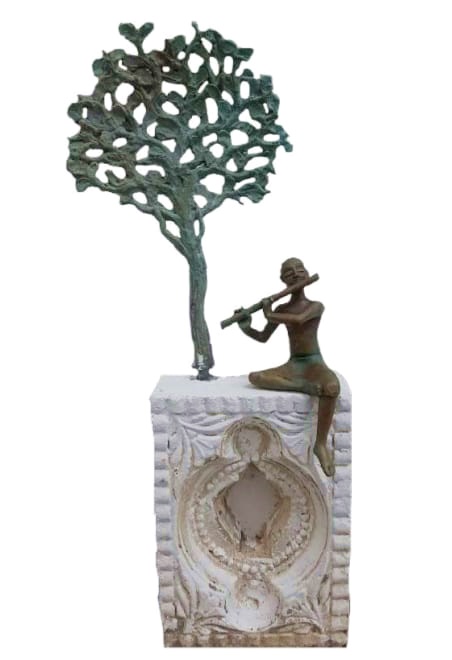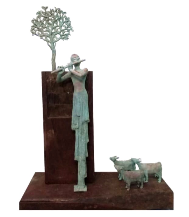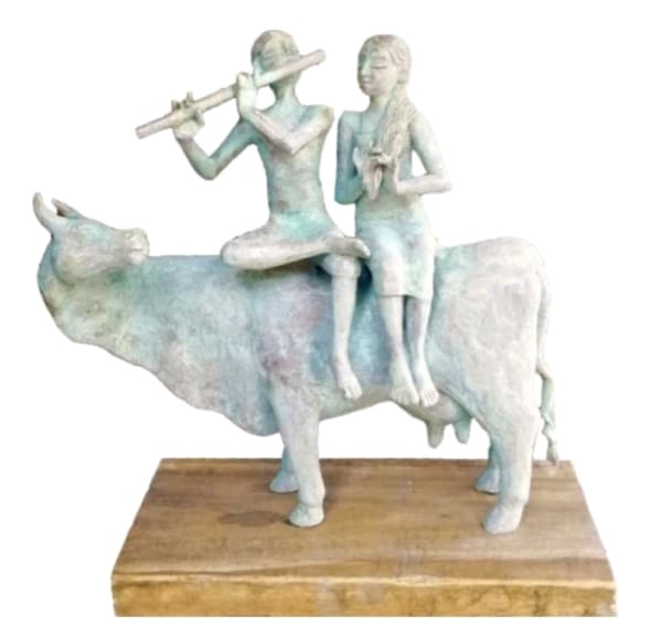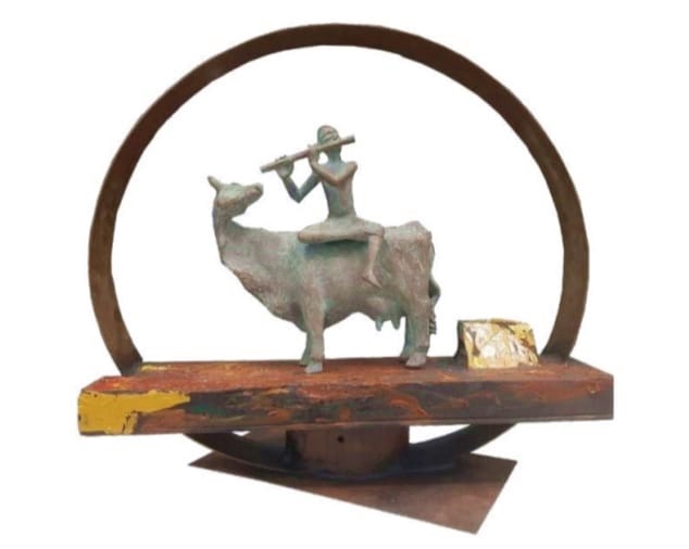 P. Gnana paints, sculpts and creates conceptual installations, as one of Singapore's leading artists. Lord Krishna and the cow are expressions of an intrinsic part of his subconscious; an element that is undeniably linked to the carefree innocence of his childhood and his deep affection for the one who nurtured him and the cows at home - his mother, as exemplified in his solid Bronze & mixed media sculptures.