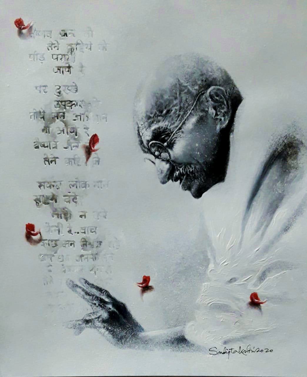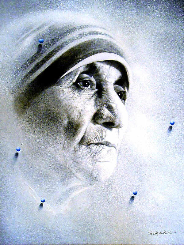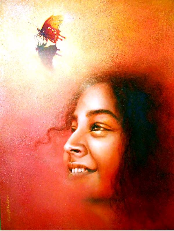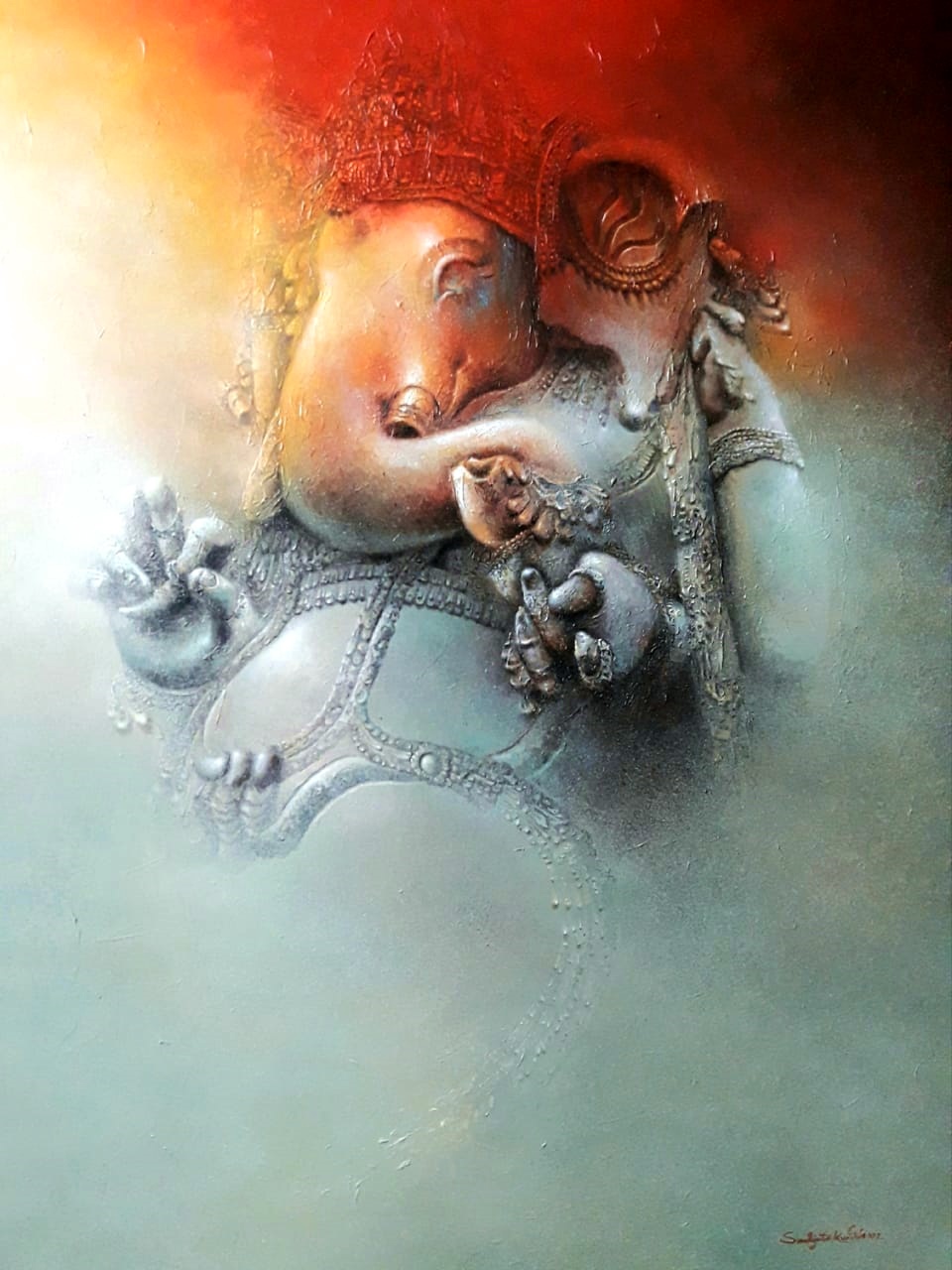 Sudipta Kundu works in realistic and mostly figurative themes, influenced by the people he sees around. He uses light and texture in his canvases, lending the images a surreal effect, and adds motifs and objects to create points of interest. Taking advantage of dramatic moments, he wants the audience to "read" his paintings. In his words, "Self expression is very important to me. I do believe that whatever I paint should be simple and can be widely understood by the audience, as well as be soothing to the eyes."