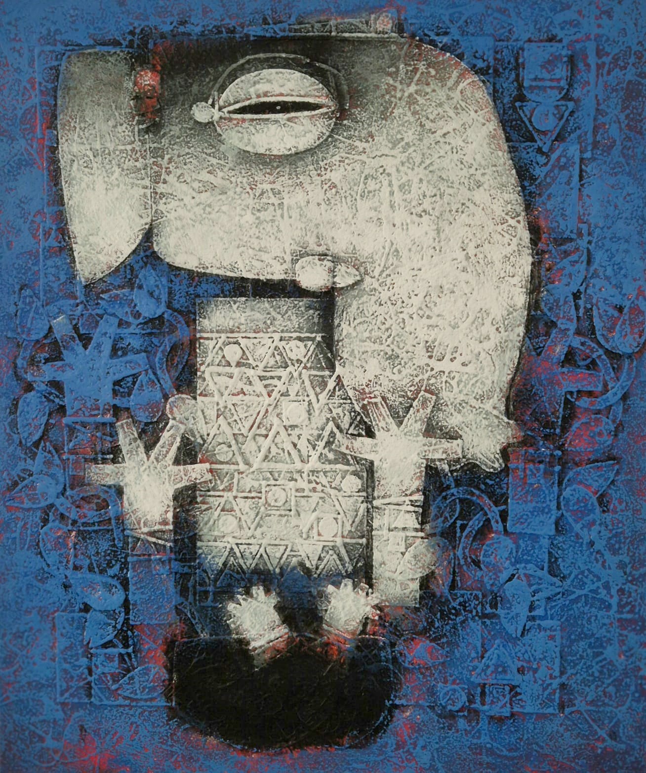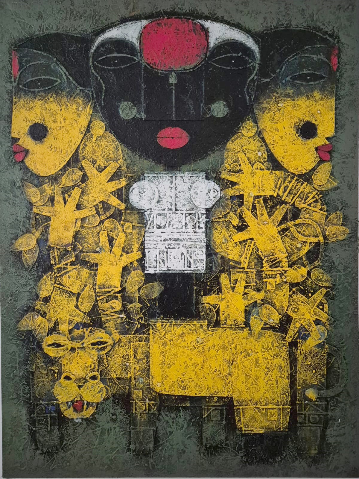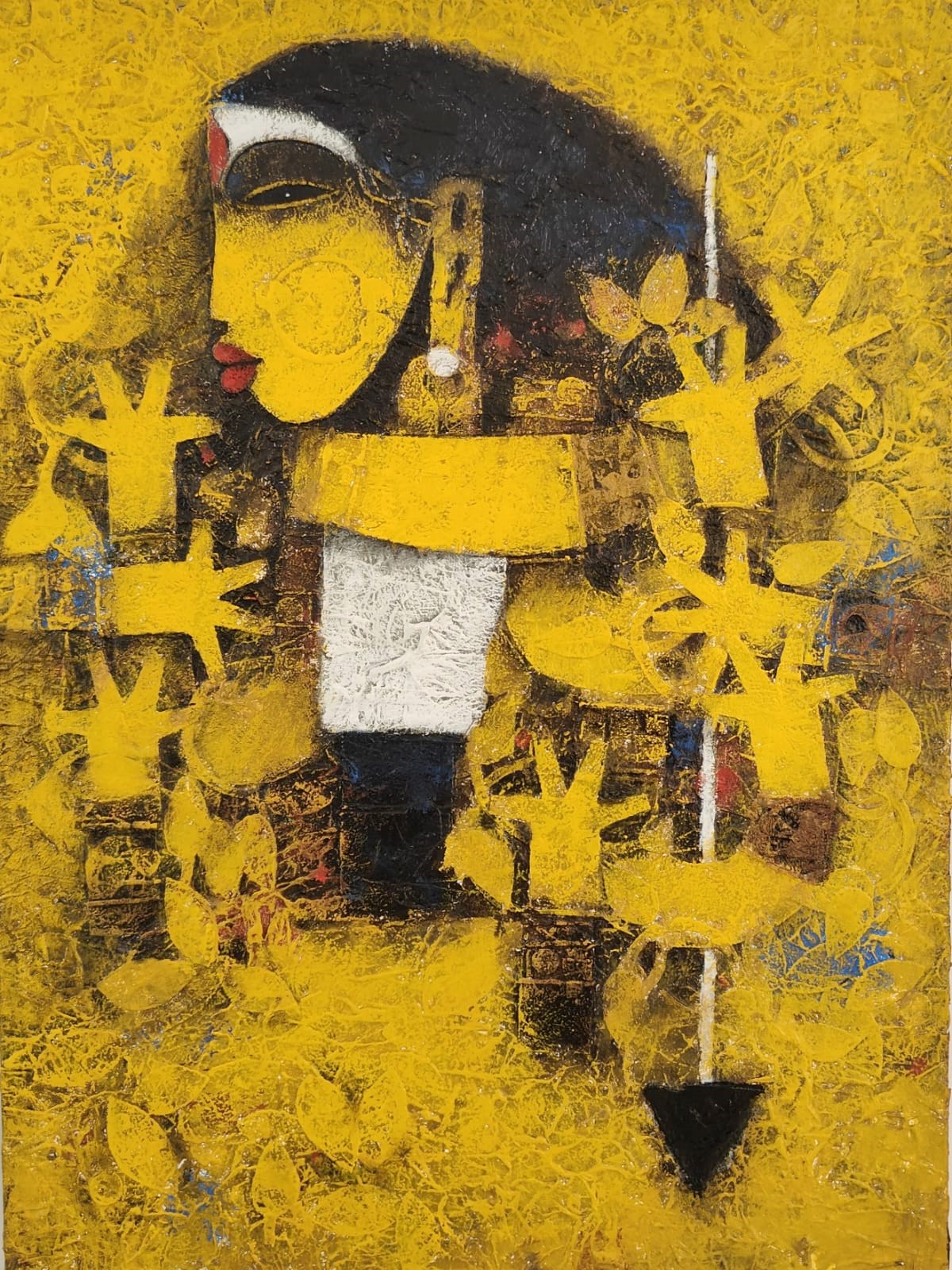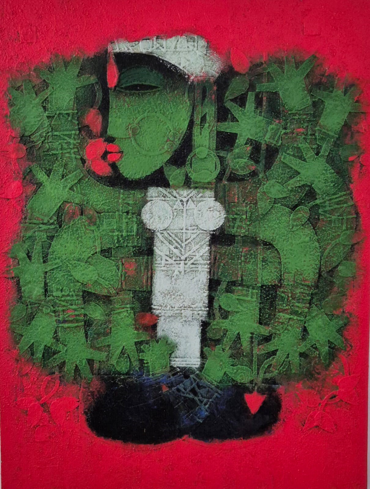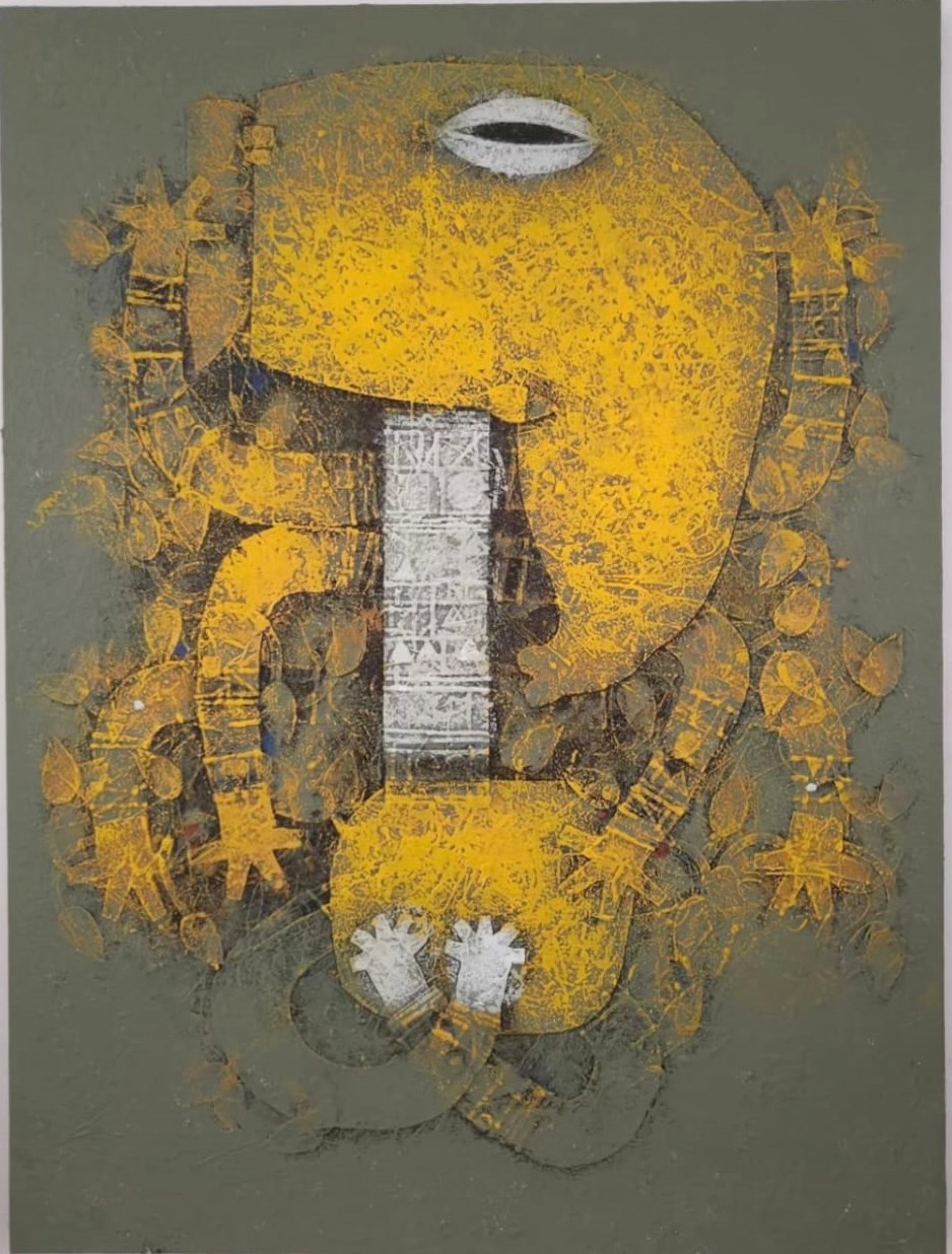 Renowned artist Basuki Dasgupta's childhood was highly fabricated by the lyrical intimacy of terracotta temples at Bishnupur, West Bengal. He shared his joys and frustrations, love and loneliness with the rhythm of terracotta, and the mysterious patterns of temple architecture. His Devi series is not merely a part of mythology, but an expression of the faith, of triumph of good over evil. Durga, the modern day representation of compassion, truth and magnanimity, in short life itself as against Mahishasura the representation of greed, self and ego.
