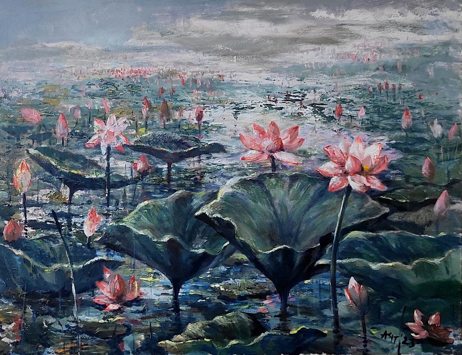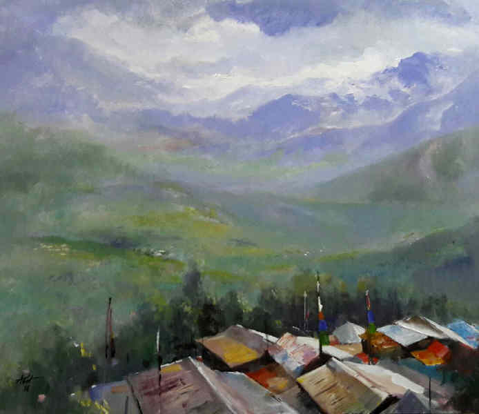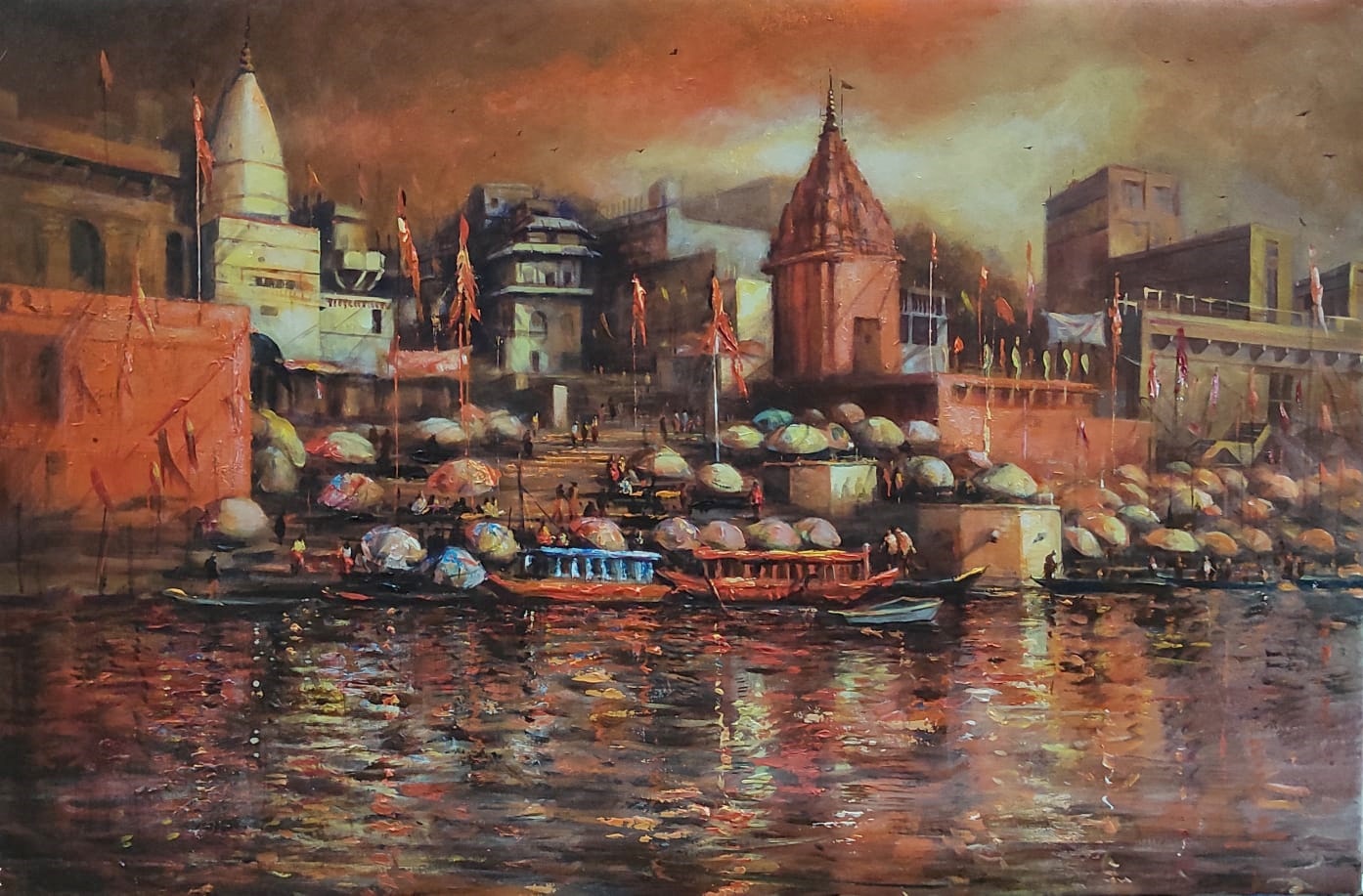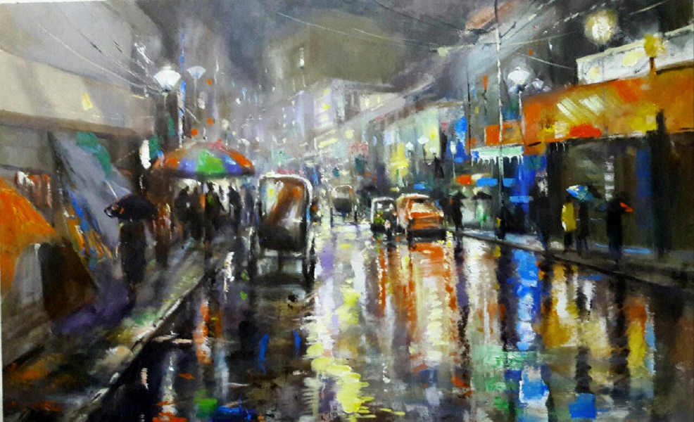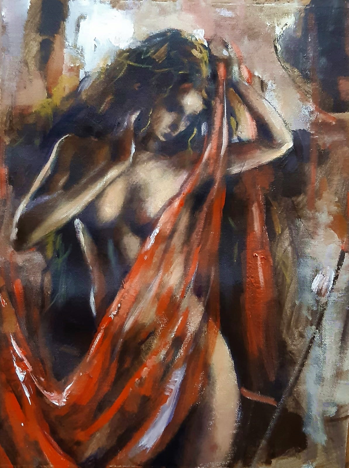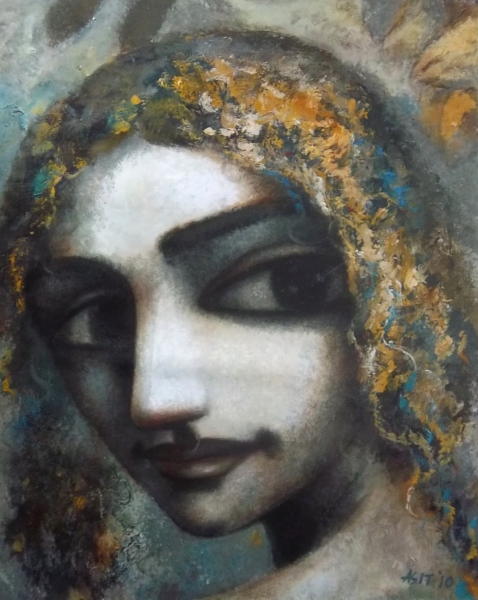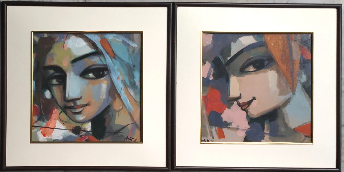 "Born in 1962 in Durgapur, Asit Sarkar graduated and trained in Kolkata from the Government College of Arts and Crafts in 1988. Asit has had many group and solo shows and been vastly appreciated for his aesthetic, soft, sensuous treatment of women, Radhas & Krishnas. He is known for his versatility in various mediums and subjects. His handling of abstracts and semi-abstracts is dexterous. Women have a special place in his works, they are sensitive beings with a soul who reach out to the viewer in terms of appeal and tug at his heart's strings. They spread a feeling of love and happiness and uplift even the darkest of moods."