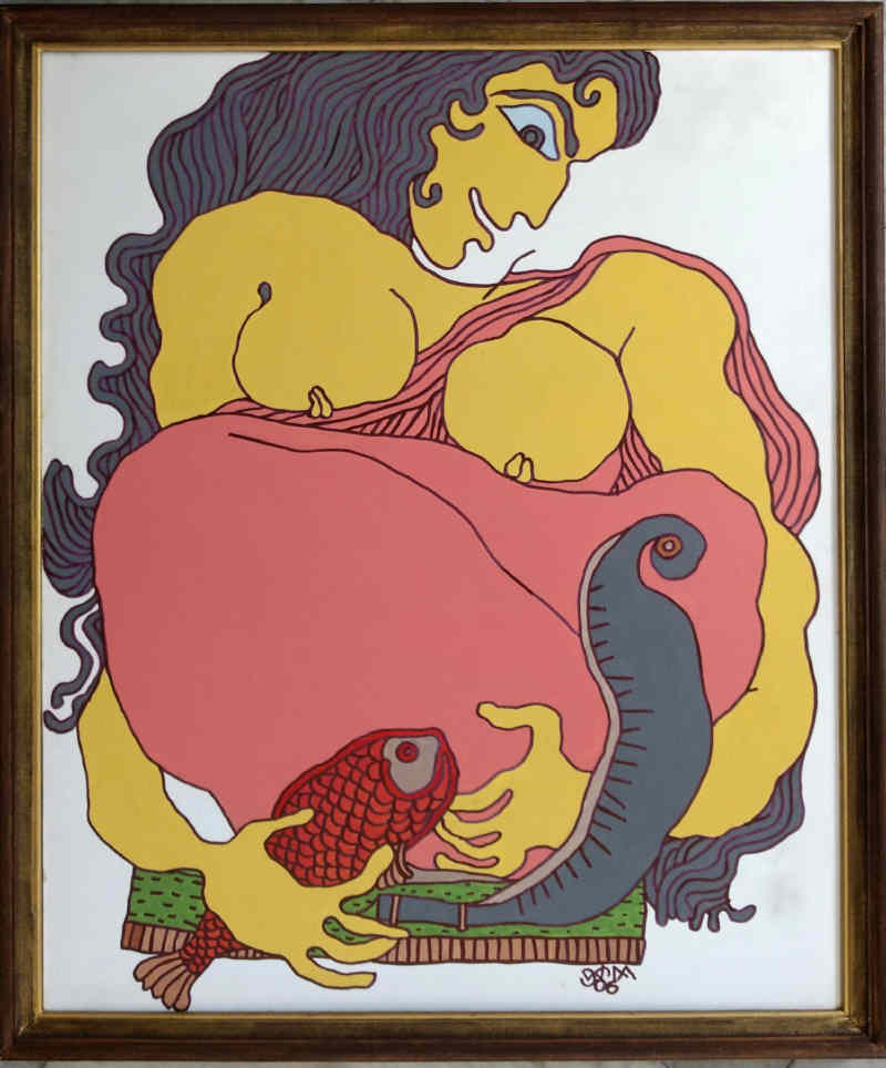 Born in 1933, Prokash Karmakar emerged from an artistic milieu to develop a distinctive figurative language shaped by the influence of Picasso and the classic Impressionists. His works alternate between calm, poetic exuberance and reflections of modern turmoil. Whether women, landscapes, or seascapes, his forms are full-bodied and sensuous, imbued with an ethereal lyricism that celebrates the rural beauty of Bengal. Karmakar's style represents a rare fusion of Eastern and Western aesthetics, while retaining a deeply personal, unmistakable identity. His landscapes, in particular, invite sensory immersion—dense tropical forests, rolling hills, and expansive valleys rendered in rich diversity. Beginning his career with street exhibitions that brought early recognition, he went on to found the Society of Contemporary Artists in 1961. A Fellowship took him to France in 1969-70, followed by major honours including the Rabindra Bharati University Award (1970), the Birla Academy Award (1976), and the Abanindra Puraskar (2000). Widely acclaimed during his lifetime, Karmakar's works continue to be highly sought after by Indian and international collectors. He passed away in 2014.