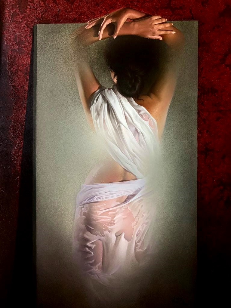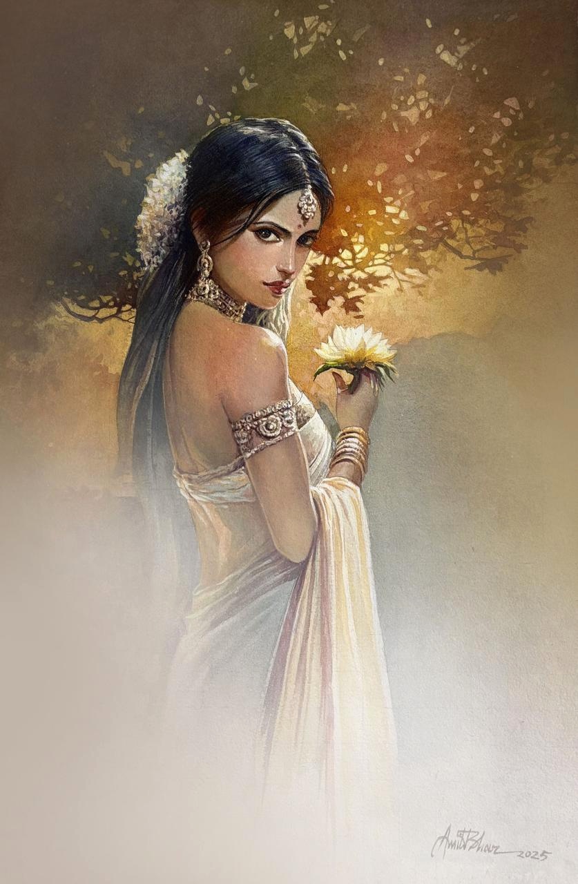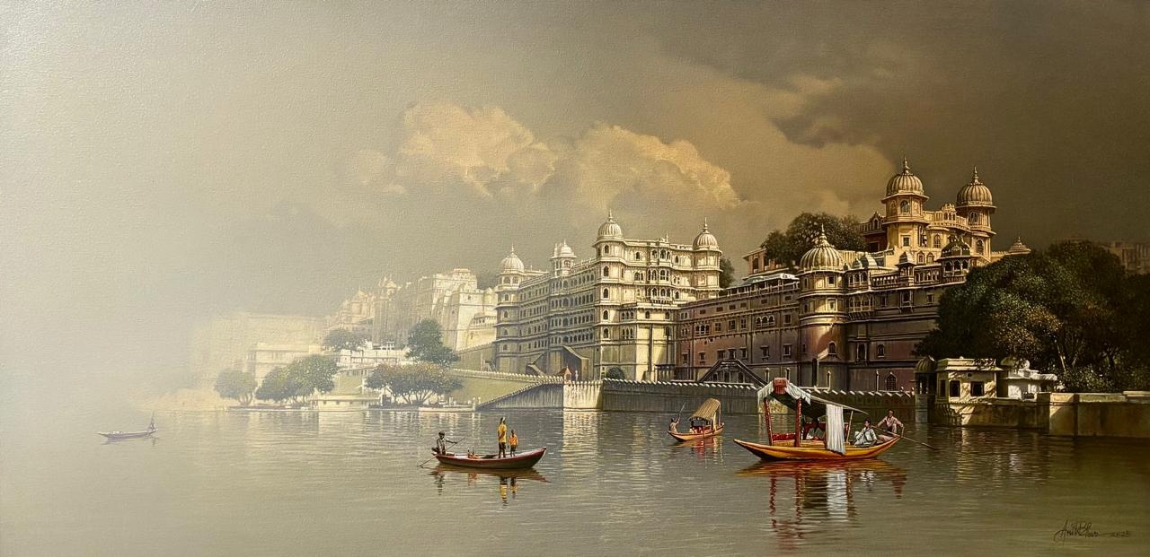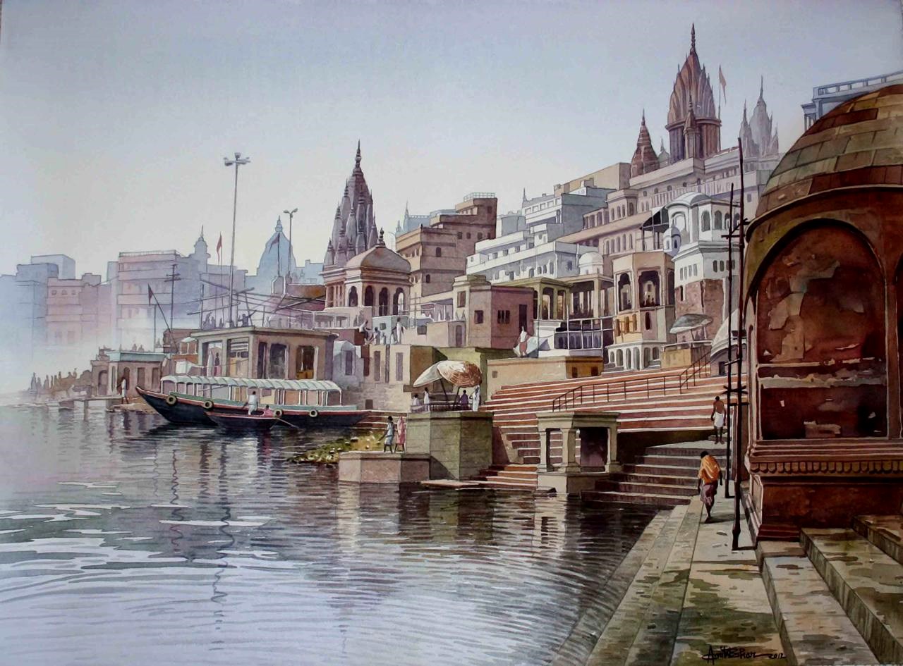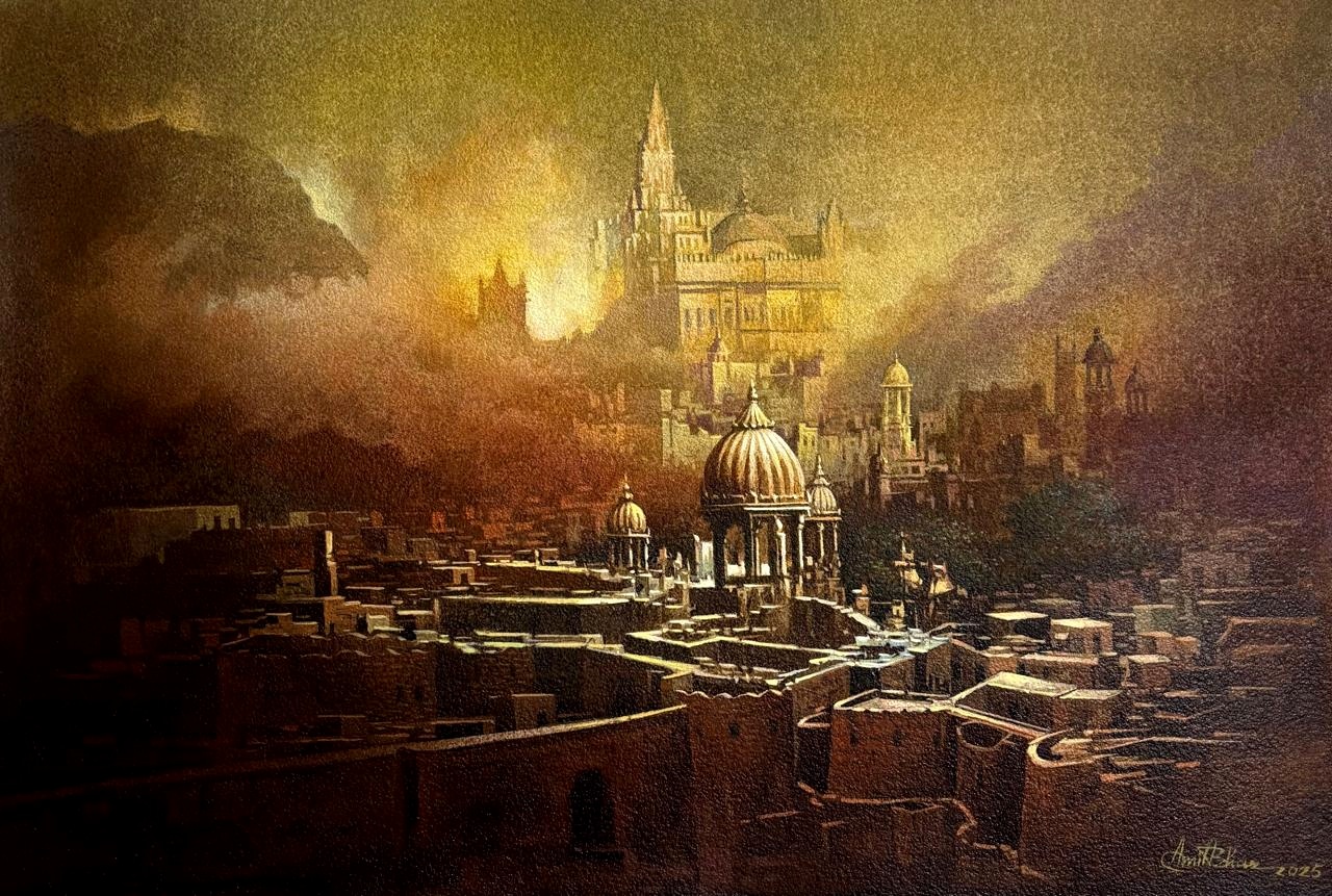 Mr. Amit Bhar's highly realistic yet subtly stylised works have his unique stamp. As in his Benares series, strongly figurative, soft but vivid hues make up his oil paintings, with close attention paid to both lighting and texture. Amit speaks of his style as 'A new semi realistic technique of texturing with the realistic play of light and shade”. In a nut shell, his paintings let the viewer to re-examine the threshold between illusion and reality, between waking and dreaming.
